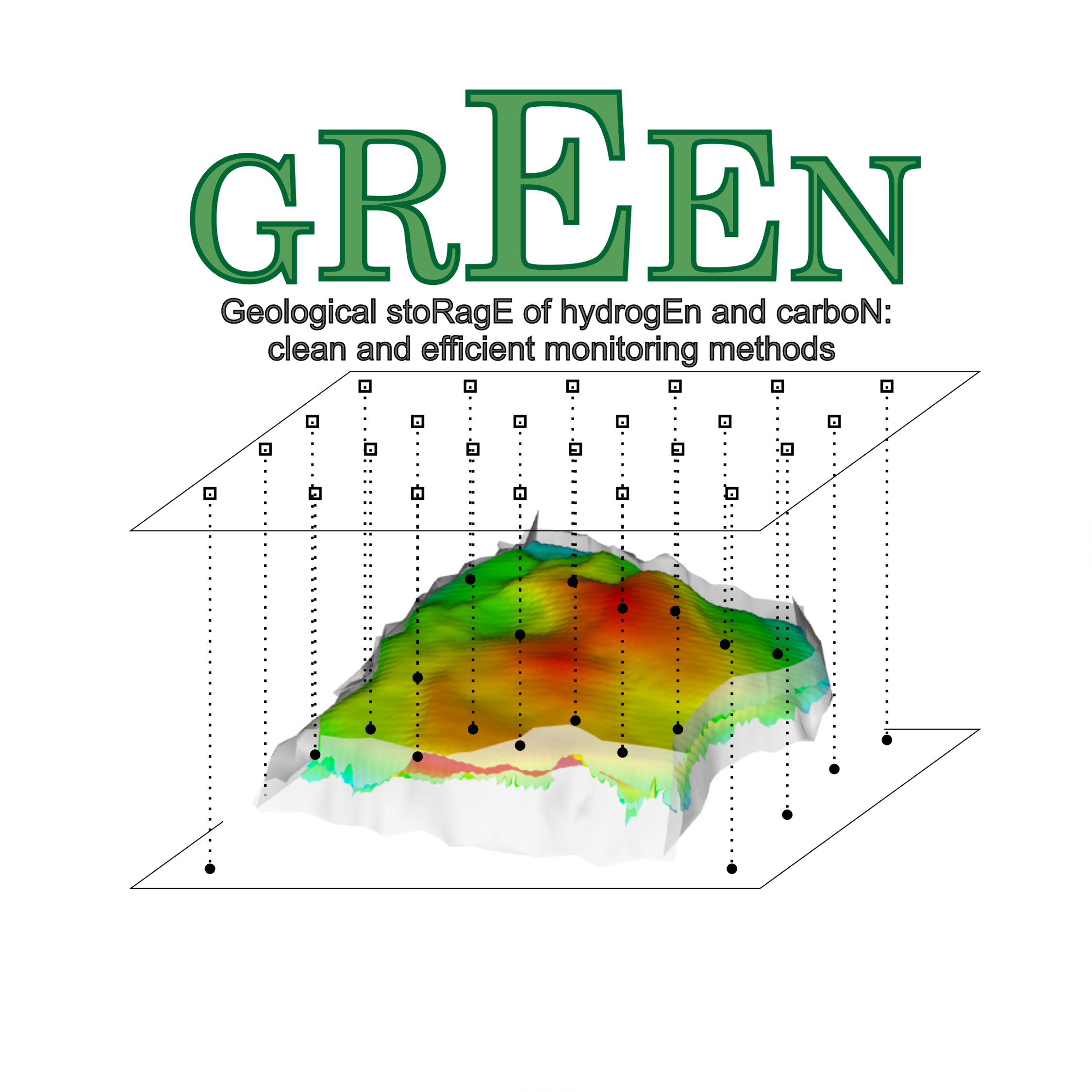 La decarbonizzazione e i combustibili alternativi verdi rappresentano due principali sfide scientifiche per il raggiungimento dell'obiettivo dell'UE di conseguire la neutralità climatica entro il 2050. La cattura e lo stoccaggio del carbonio (CCS) assieme alla cattura, stoccaggio e utilizzo del carbonio (CCUS) e alla produzione combinata con lo stoccaggio temporaneo di grandi volumi di idrogeno verde costituiscono tecnologie promettenti per raggiungere questi obiettivi. Il progetto GREEN si occupa del monitoraggio geofisico dei siti di stoccaggio dei fluidi (CO2 e H2). I metodi gravimetrico, elettrico ed elettromagnetico sono proposti come alternativa alle tecniche di monitoraggio tradizionali e più costose. L'efficacia del metodo proposto sarà testata mediante uno studio teorico in un sistema di stoccaggio geologico naturale costituito da rocce porose con caratteristiche petrografiche e condizioni geologiche già note. In tale contesto, sarà valutata anche la capacità di rilevare eventuali perdite del serbatoio dovute alla dismigrazione dei fluidi stoccati.
