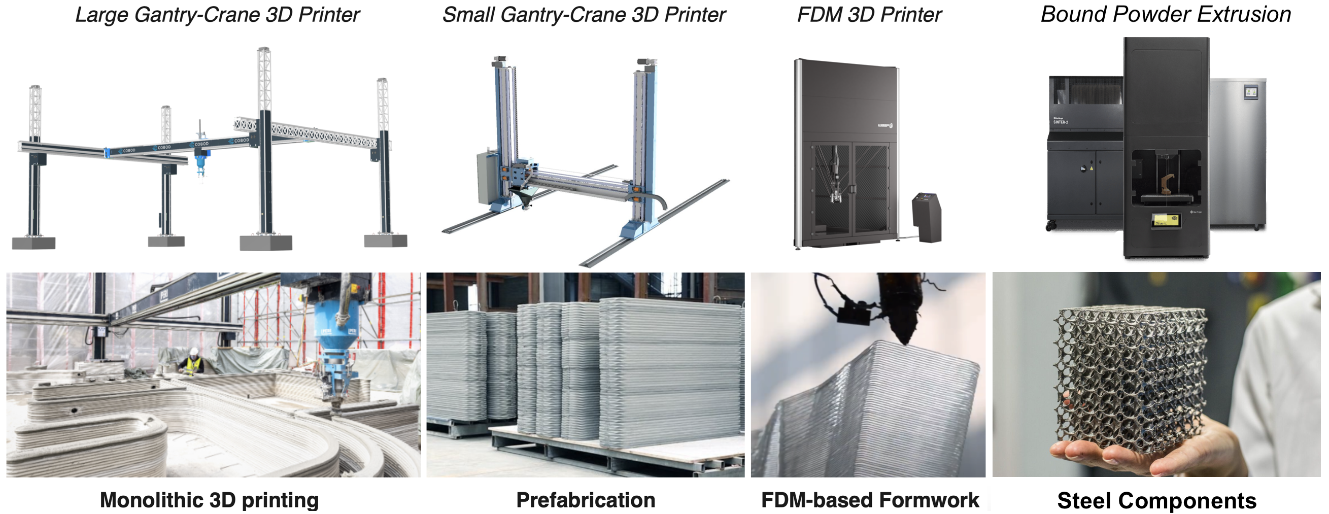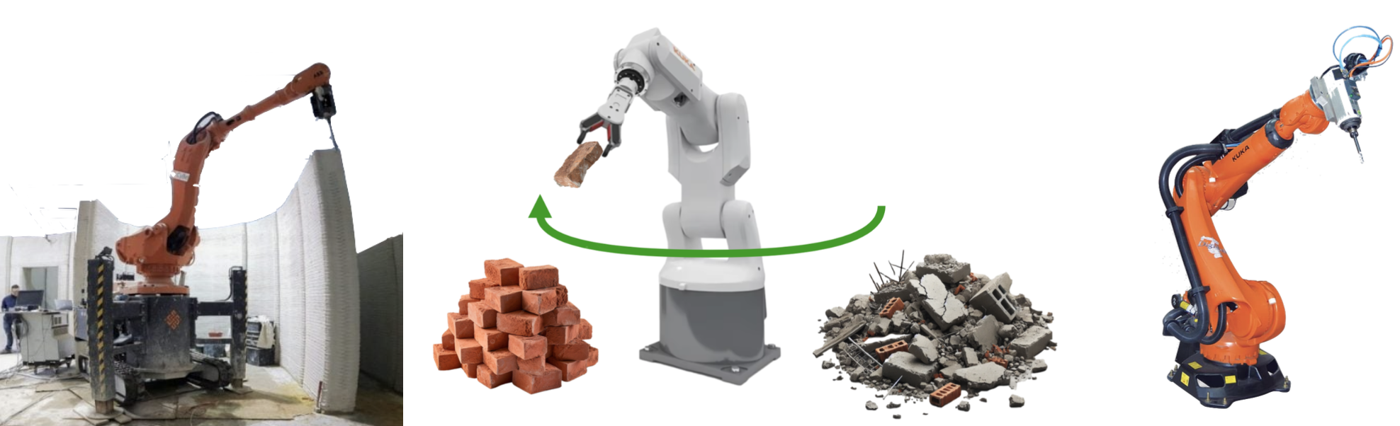 - Sistemi robotici per la stampa 3D di materiali e componenti edilizi.